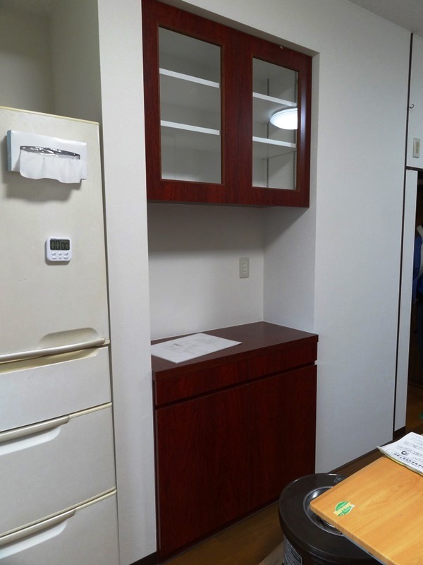 台所食堂が物が多くあって狭いのでもっと収納スペースを考えて