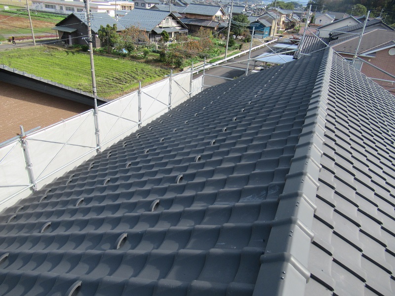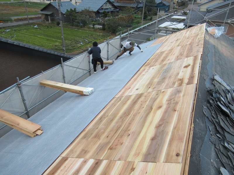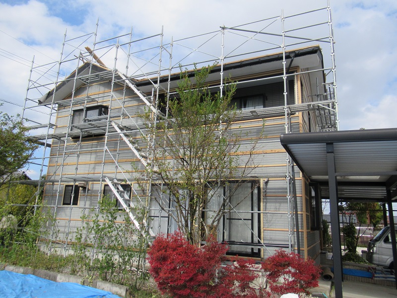 外部作業足場を組むので、この時に屋根の葺き替えもさせて頂きました。