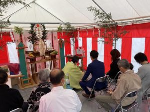 小雨の中での地鎮祭でしたが、さほど天気が崩れることもなく、厳かな雰囲気の中、無事に終えることができました。