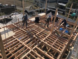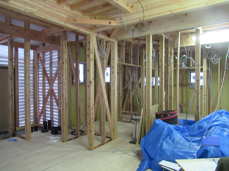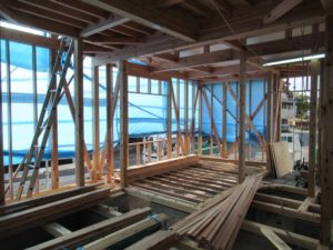 建て方が終わってからは、サッシの取付け、外壁下地をしていきました。