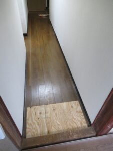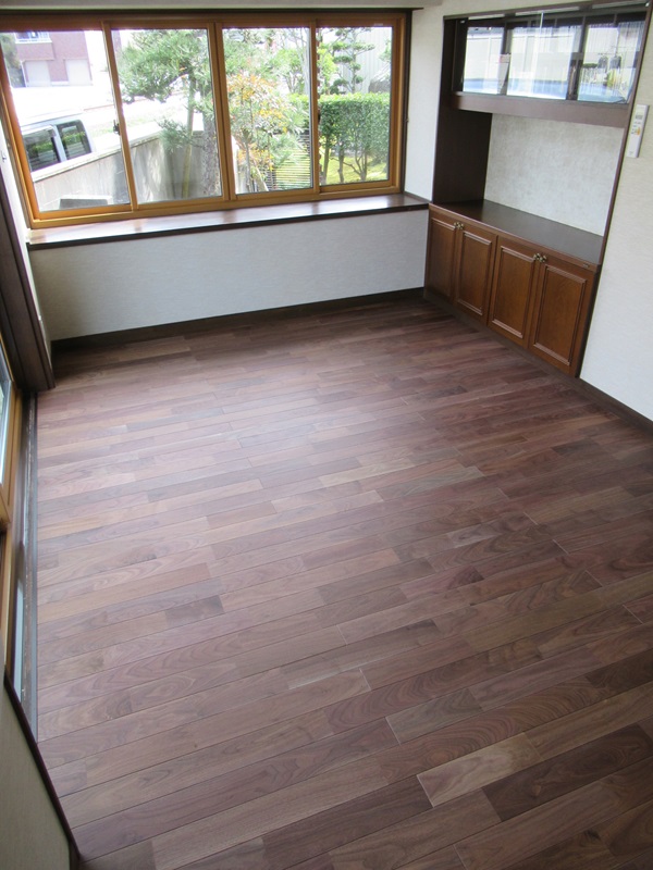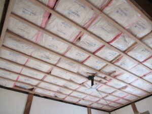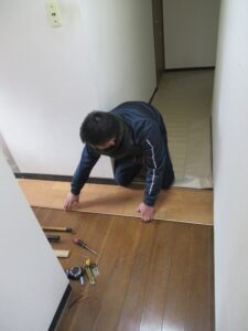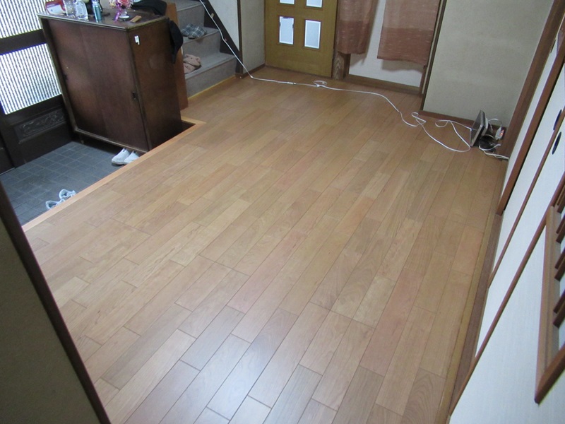 断熱材を入れました。床は畳を撤去し、合板を敷いて、フローリングを張りま