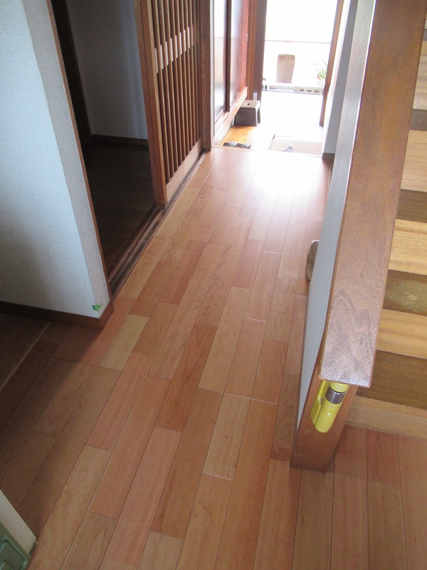 廊下の床がフワつくとのことで、下地補強しフロアーを