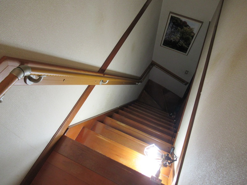 高齢になり階段の昇り降りに不安になったとの事で手摺りをつけさせて頂きました。下地補強板を使っての施工です。